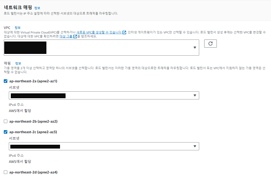 - EC2 네트워킹의 가용영역 확인 후 체크 (1개는 임의 체크)