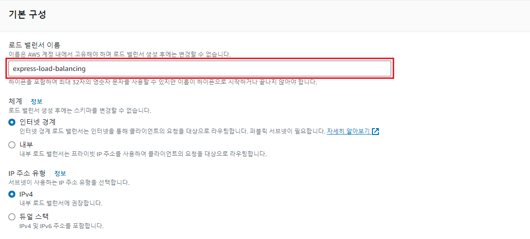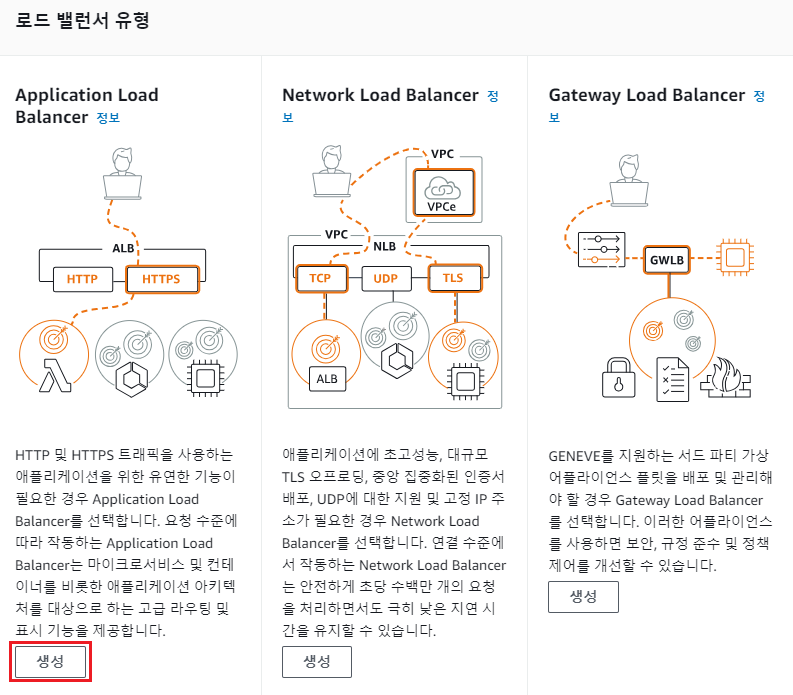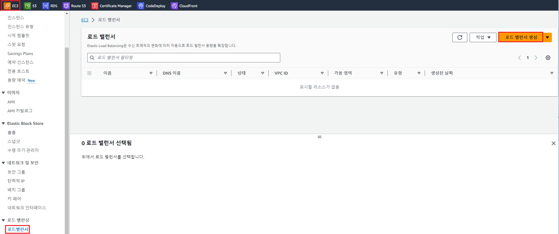 - EC2 → 로드벨런서 →로드 벨런서 생성