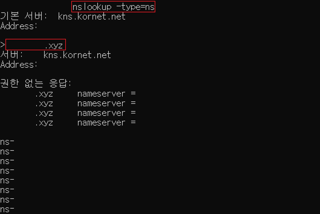 - 하단의 명령어를 입력해서 가비아에 등록한 4개의 nameserver 확인