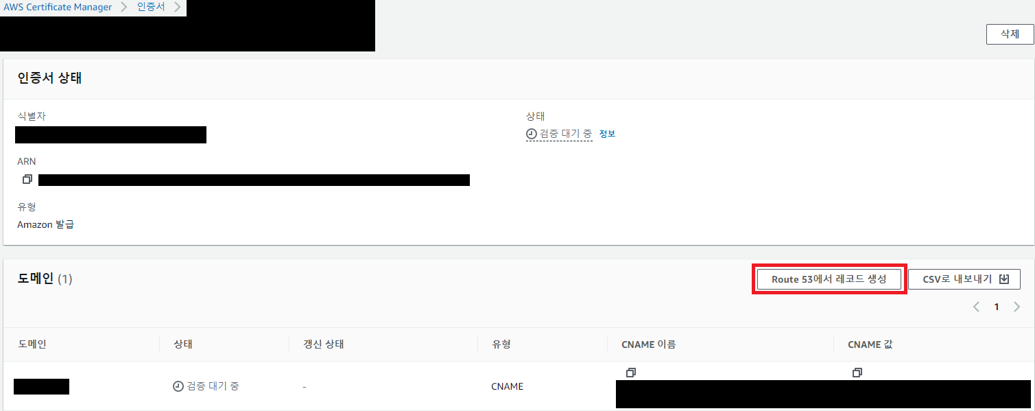 - Route53 → 호스팅 영역 → 호스팅 영역 생성